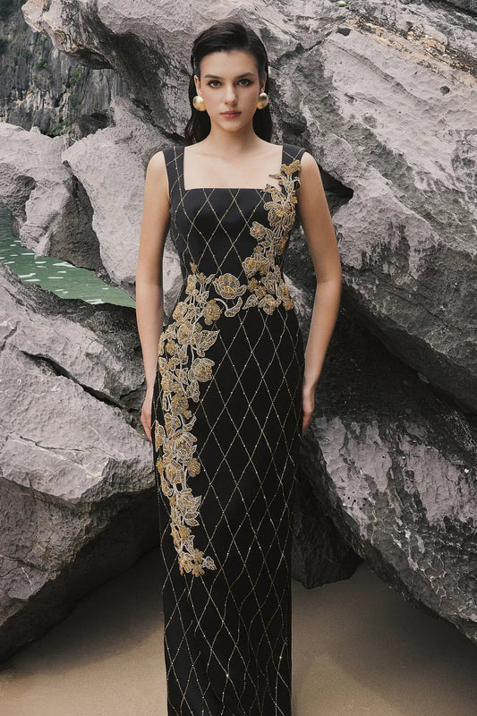 Gold Draped Maxi Dress