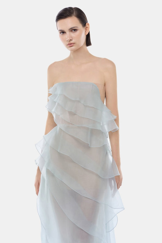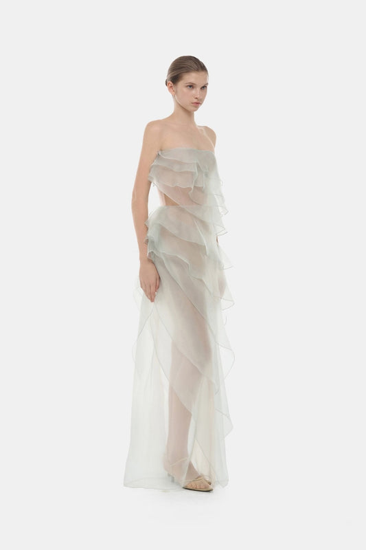 Mint Strapless Ruffle Maxi Dress