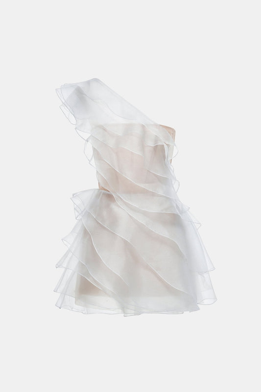 Beige Ruffle One-Shoulder Mini Dress